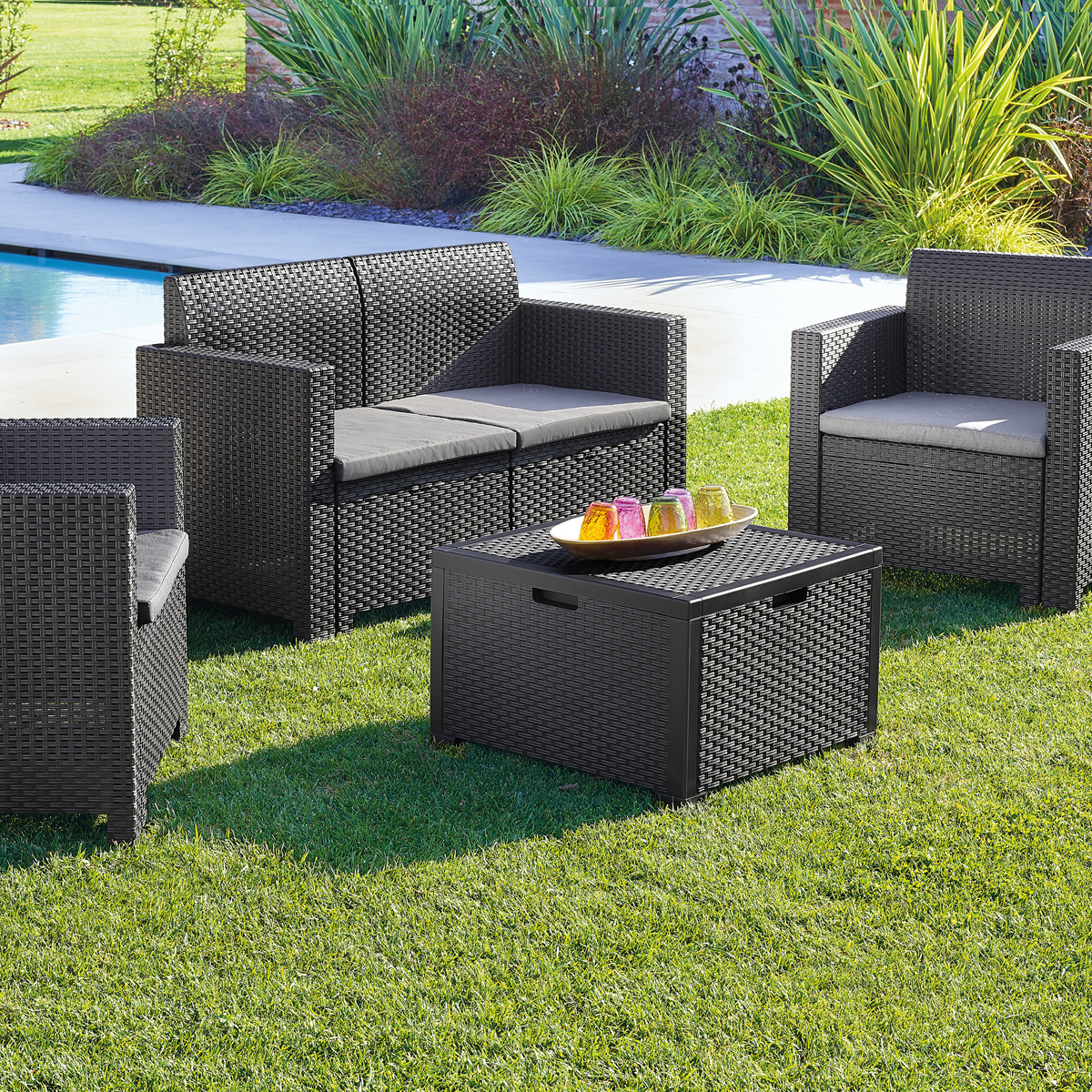 Réf. 4449Set pour 4 personnes en polypropylène,effet rotin.