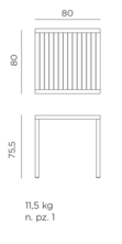 Table empilable 80X80 x H75,5 cm.